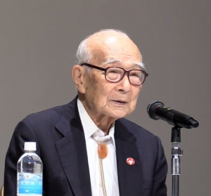 記念講演では、日本被団協の田中熙巳代表委員が、長崎での被爆の生々しい経験を語り、「一瞬にして何千、何万の命を奪う。原爆の結果を見て、核兵器は絶対戦争に使ってはいけないと思った。通常兵器とは質が違う」と指摘。「若い人たちには、頭の上には核兵器がいっぱいあると思ってほしい」と訴えました。また「一番悪いのは、アメリカの核の傘に頼る日本だ」と指摘し、「抑止力とは核兵器を使うのと同じだ。持つこと自体が国際法違反だ。それを言えない政治家は何らかの利益を得る人たちだ。それを見抜いてほしい」と語りました。