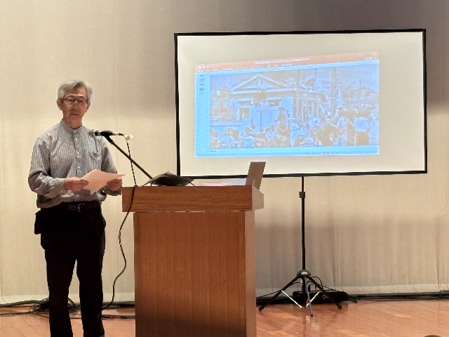 「ピースフェスタ門真」の会長 北澤照久さんが、「友清克二さんと歩んだピースフェスタ門真30年」と題して話されました。