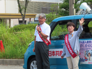 日本共産党門真市議会議員団は終戦後80年を迎える15日、古川橋駅等で街頭演説を行いました。