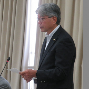 答弁では、指定避難場所は現在22カ所で学校の統合で令和8年には20ヶ所に減少するが統合後の施設の活用や他の公共施設の活用について検討を進めていること、空調の整備状況については、現在3校が整備積み、8年度には3校整備されるとのことでした。防災訓練については、2年毎に実施している市主催の総合防災訓練と自治会等が実施する防災訓練の支援や防災講話等を行っているとのことで、福田議員はさらなる充実を求めました。また、スフィア基準については、引続き避難所の環境整備等の参考にしたいとしました。