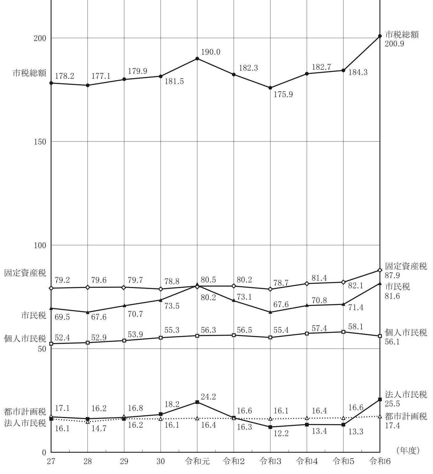 令和6年度の決算の特徴は、市民税(個人・法人)や固定資産税などの市税の総額が平成19年度以来200億円を超える一方で、普通建設事業費が151億5千万円と前年度84億7千万円と比べ約67億円も増えていることが大きな特徴の一つです。道路や公園整備など必要な事業もありますが、ゼネコンやデベロッパーが儲かる事業が今後も目白押しです。