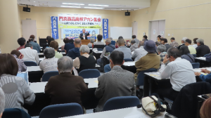 講演後は門真西高校1期生の方や、門真西高校に14年間教員として勤めてきた方はじめ多くの方から、思いや感想、質問が出され、最後に、大阪府教育委員会に提出予定の集会決議が全会一致で採択されました。この集会には、議員団から福田英彦議員、豊北ゆう子議員も参加しました。