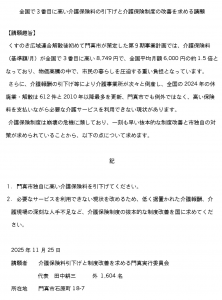 また、「全国で3番目に高い介護保険料の引下げと介護保険制度の改善を求める請願」が、「介護保険料の引下げと介護保険制度の改善を求める実行委員会」から1605名の署名を添えて提出されました。(請願趣旨・請願項目は左側参照)