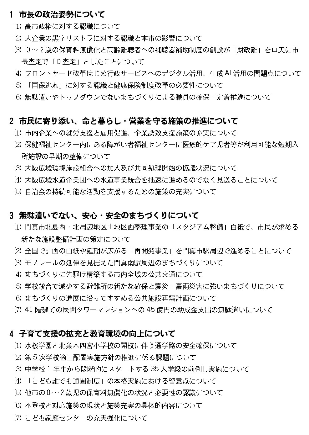 第4順位 日本共産党 福田 英彦議員 質問要旨