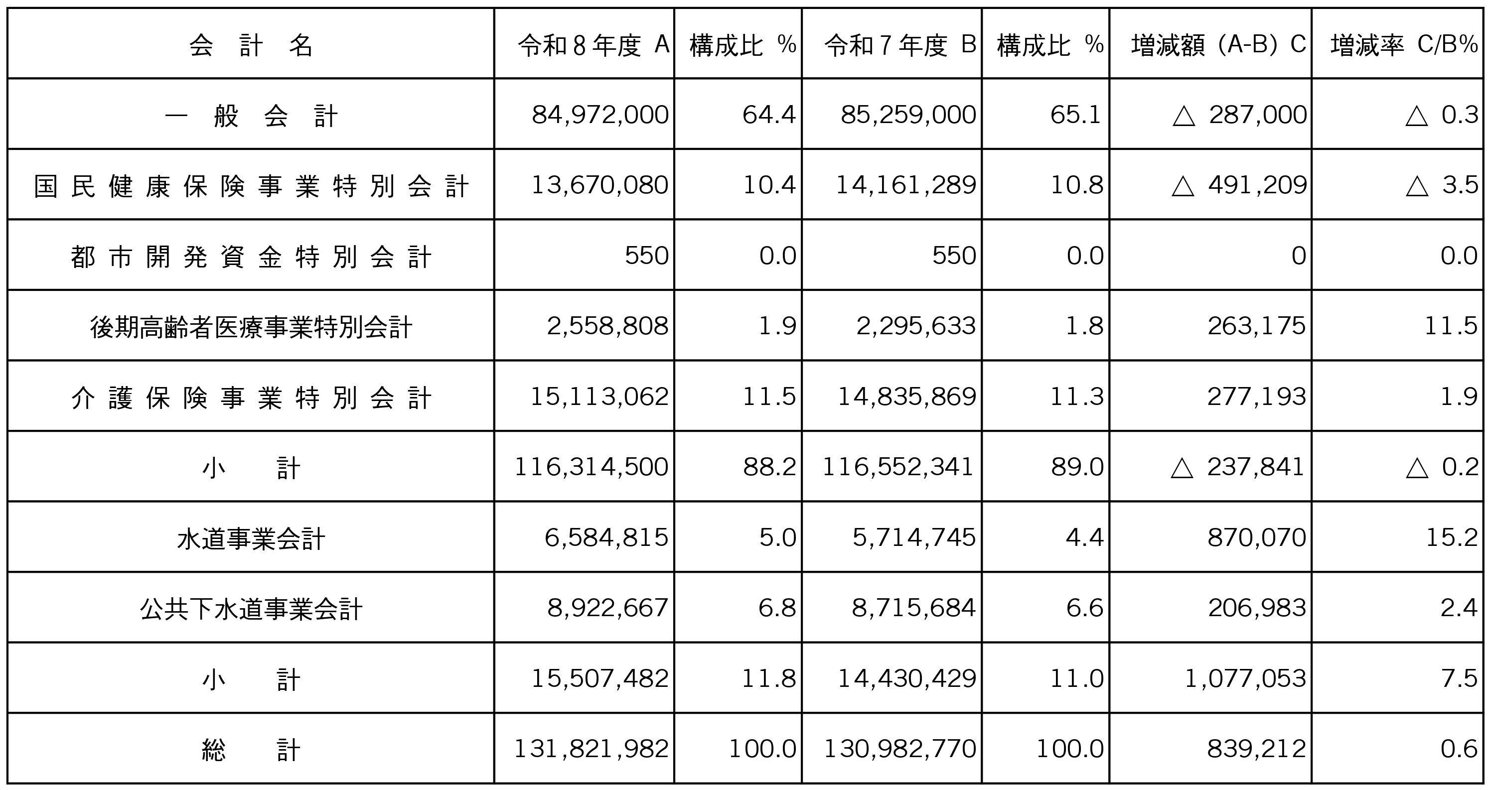 2026(令和8)年度 当初予算総括表単位 (単位:千円)